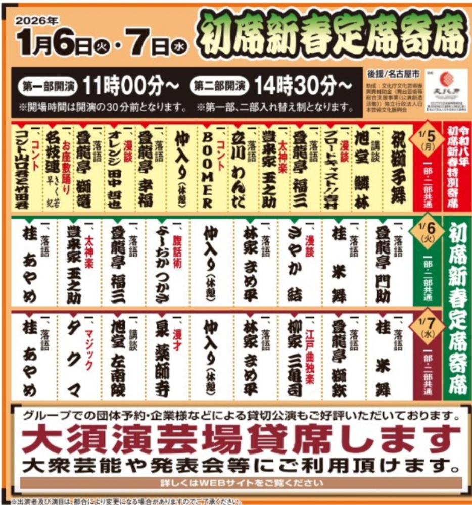| 1月度 | 名古屋教室 13日(火)&27日(火) |